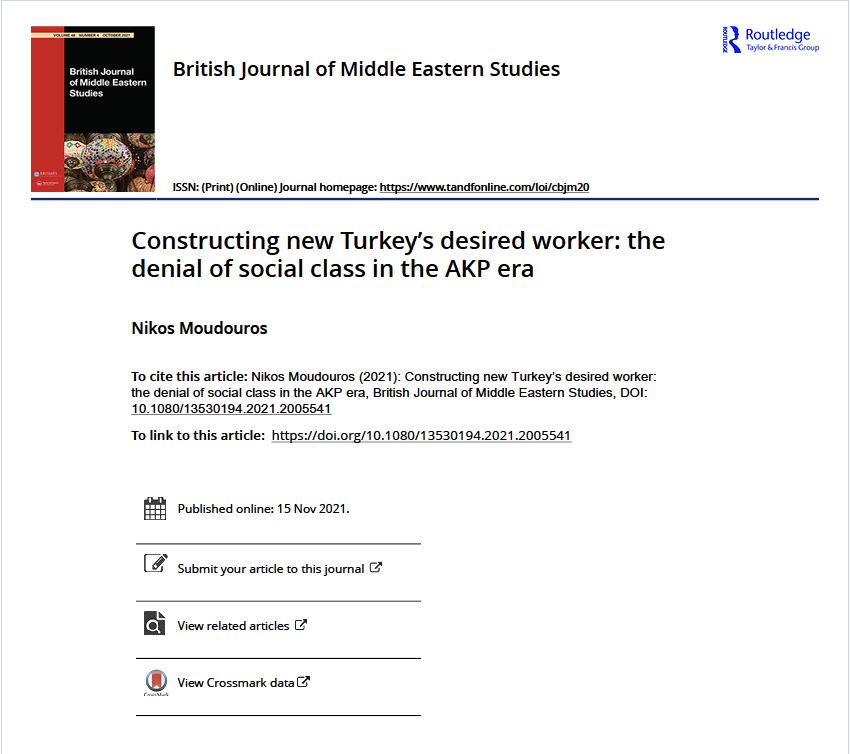 The process of intensification of authoritarianism in Turkey was characterized by the attempt to monopolize state power and marginalize the opposition. At the same time, however, the intensity of authoritarianism extended beyond the institutional level of the state and decisively affected many levels of social relations. This article analyses one of the many expressions of the relationship between authoritarianism and neoliberalism at social class level and the attempt to construct a disciplined working class committed to the state’s strategies. It focuses on the analysis of the content of ‘desired worker’ and ‘desired trade unionism’ which the AKP government tries to impose, aiming to intensify control over sections of labourers. Analysing the content of social class, but even more specifically the content the government aims to attribute to the concept of working class and trade unionism, this study contributes towards a more general understanding of the development of authoritarianism. Decoding the different perceptions and ways the Erdoğan government exploits them in order to shed them of their class content, this article aims at a better comprehension of power mechanisms and mechanisms reproducing social inequality.